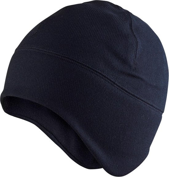 Gebreide beanie met winddichte band over het voorhoofd, de oren en de nek.