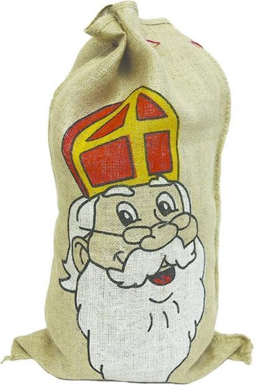 Luxe Sinterklaas kado zak jute met rood koord met een formaat van 85 x 50 cm en voorzien van sint print.