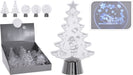 TABLE LIGHT WITH WHITE COLOUR LED WITH SILVER BASE INCLUDING 2X CR2032 BATTERIES, FLASHING LED, SMALL SIZE: DIA 90X115X45MM AND TREE :100X150X45MM, WEIGHT 35 GRAM, 2X TREE DESIGNS AND 3X SANTA DESIGNS (2L 8MM 1.5V WHITE COLOUR LED) 18, 18PCS PACKED IN TRY ME DISPLAY, ASS.:5 Designs(Santa sledge/Santa w gifts/Santa music/Tree snowman/Tree santa)/ 90X47X114MM, Hangtag: 2X2032, WEEE /