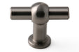 Mooie T- vormig greepje uit metaal met een inoxlook kleurige finish. De mooie ronde afwerking van de T- verbinding in combinatie met de kleur geeft dit meubelknopje iets modern.