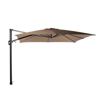 Een stijlvolle Roma parasol met flap in taupe kleur, met een afmeting van 3x3 meter. Perfect voor een elegante en functionele schaduwoplossing.