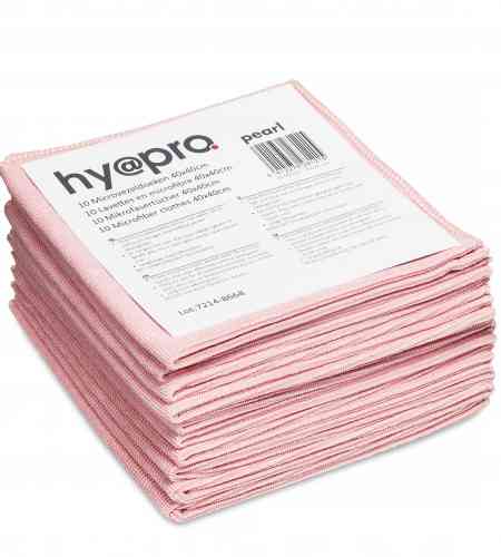 Microvezeldoek Hy@pro pearl 40x40cm roze à 10 stuks;Gewicht 350grams / m2;Geschikt voor alle oppervlakten (gevernist, gelakt, glas, etc.);Laat geen...