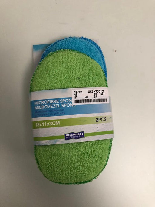 SPONGE MICROFIBER SET OF 2PCS, SIZE 185X110X30MM. WERIGHT 12 GRAM EACH PIECE. 2 ASSORTED COLOURS IN ONE SET. ULTRA CLEAN BRIGHT BLUE-311C AND GREEN...
