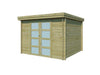 De opbouw van het Ervik II tuinhuis in vurenhout van Gardenas is volgens het blokhut-principe. De houtdelen van de wanden zijn geschaafd tot een dikte van 28mm en klikken in de hoeken makkelijk in elkaar. Deze techniek garandeert een heel robuuste en winddichte tuinberging als resultaat. Het dak van dit fraaie ontwerp is afgewerkt met staalplaten met anticondensbescherming. De dubbele deur garandeert een makkelijke toegang. De tweede deurhelft kan geblokkeerd worden, indien je met grote voorwerpen in en uit moet. De roestvrije klink met geïntegreerd cilinderslot vormt een esthetisch en kwalitatief accent, voorzien van een set sleutels die de mogelijkheid bieden het geheel volledig af te sluiten. Van binnen uit kan het model ook afgesloten of geopend worden, daarvoor heb je de sleutels zelfs niet nodig. Naar spelende kinderen toe geeft dit een veilig gevoel, onmogelijk om jezelf op te sluiten. Het plexiglas zorgt voor zeer veel lichtinval en zorgt er gelijk ook voor dat er geen inkijk mogelijk is in het tuinhuis. Al het nodige beslag voor de opbouw van dit product wordt meegeleverd in het pakket met een duidelijke handleiding. Dit model werd onder druk geïmpregneerd voor een langere levensduur.