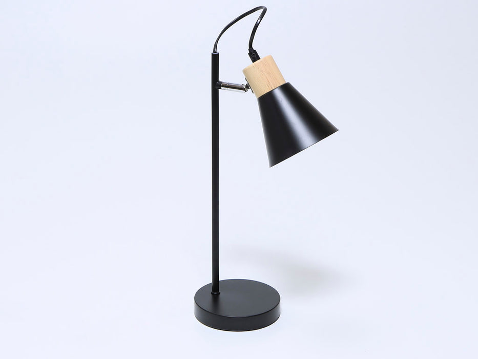Moderne zwarte tafellamp 44xØ14cm. Zwarte metalen voet en lampenkap met natuurlijk houtdetail. Gebruik deze lamp om een ??huiselijke en warme sfeer te creëren.
