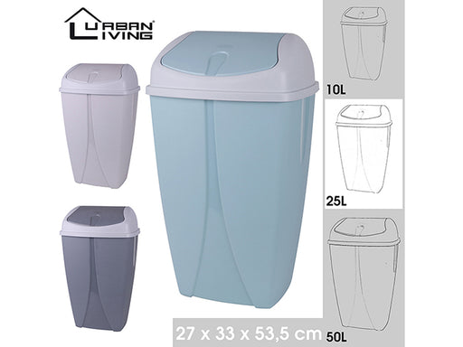 Kunststof vuilnisbak van 25 L met metalen handvat en deksel. Afmetingen 33x34 cm.