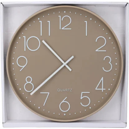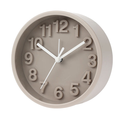 Houd de tijd in de gaten met deze elegante klok in een rustgevende taupe tint. Met een diameter van 13,5 cm past deze klok perfect op elk nachtkast...