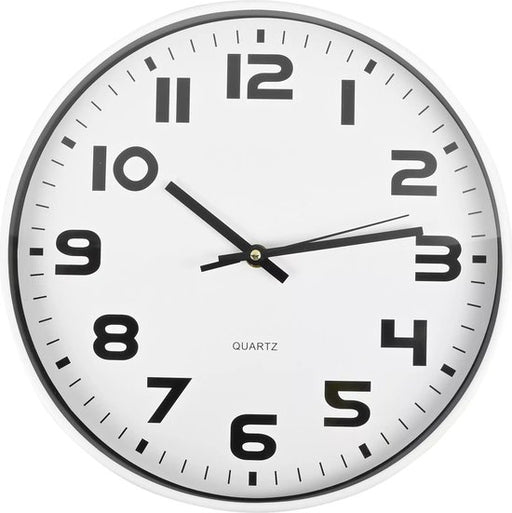 Wandklok van polypropyleen met zilveren frame en witte wijzerplaat. Afmetingen: 30x4 cm.
