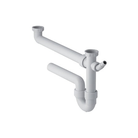 Siphon anti-odeurs pour 2 conteneurs. Plastique blanc. Avec raccord pour évacuation du lave-vaisselle.