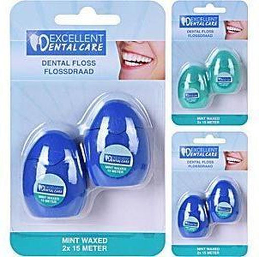 Lot de deux fils dentaires pour un sourire radieux. Le fil dentaire est composé de nylon 630D avec une couche de cire de menthe pour un goût frais.