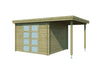 La construction de l'abri de jardin Ervik II en bois d'épicéa de Gardenas est basée sur le principe de la cabane en rondins. Les parties en bois des murs ont été rabotées sur une épaisseur de 28 mm et s'emboîtent facilement dans les coins. Cette technologie garantit ainsi un abri de jardin très robuste et résistant au vent. L'extension est idéale comme salon, pool house ou cuisine extérieure pour profiter encore plus de votre jardin ! Vous pouvez bien sûr également l'utiliser pour des raisons pratiques, comme un abri à vélos. La double porte garantit un accès facile. La deuxième moitié de porte peut être bloquée si vous devez entrer et sortir avec de gros objets. La poignée en acier inoxydable avec serrure à cylindre intégrée forme un accent esthétique et qualitatif, équipée d'un jeu de clés qui offre la possibilité de fermer complètement le tout. Le modèle peut également être verrouillé ou ouvert de l'intérieur, vous n'avez même pas besoin de clés pour cela. Cela donne un sentiment de sécurité aux enfants qui jouent, rendant impossible de s'enfermer. Le plexiglas apporte beaucoup de lumière et garantit également qu'il n'y a aucune vue sur l'abri de jardin. Tout le matériel nécessaire à l’assemblage de ce produit est inclus dans l’emballage avec un manuel clair. Ce modèle a été imprégné sous pression pour une durée de vie plus longue.
